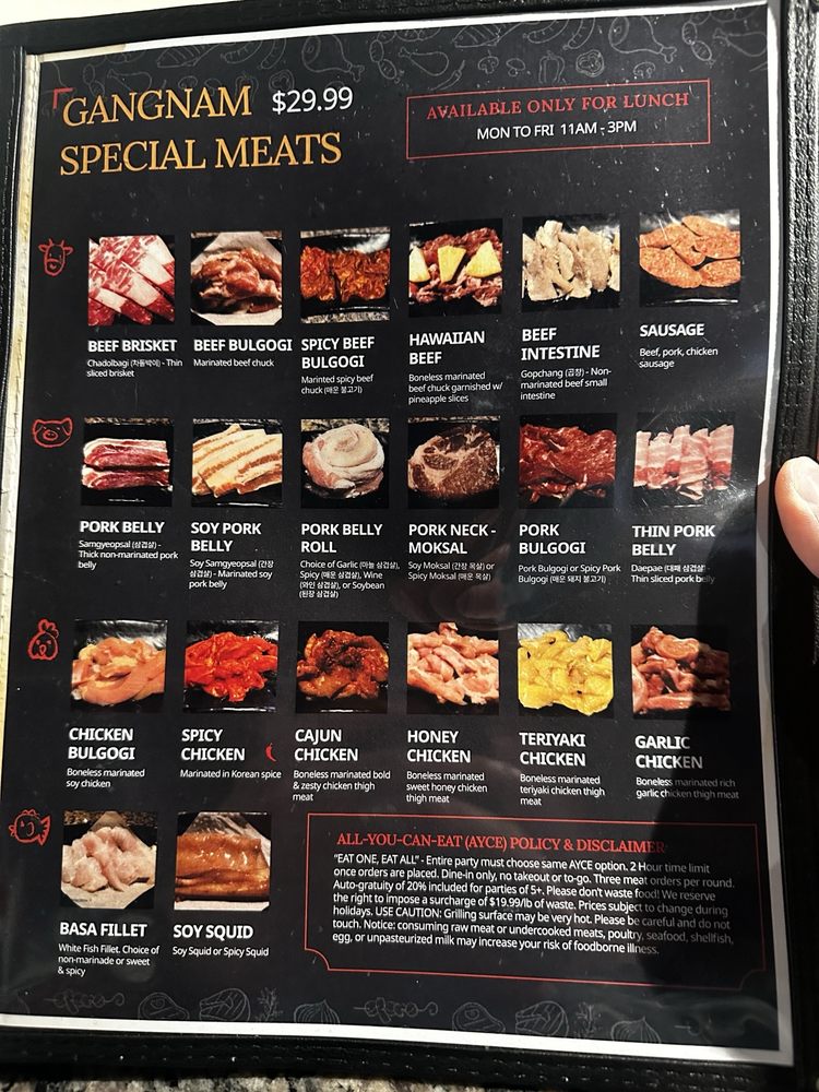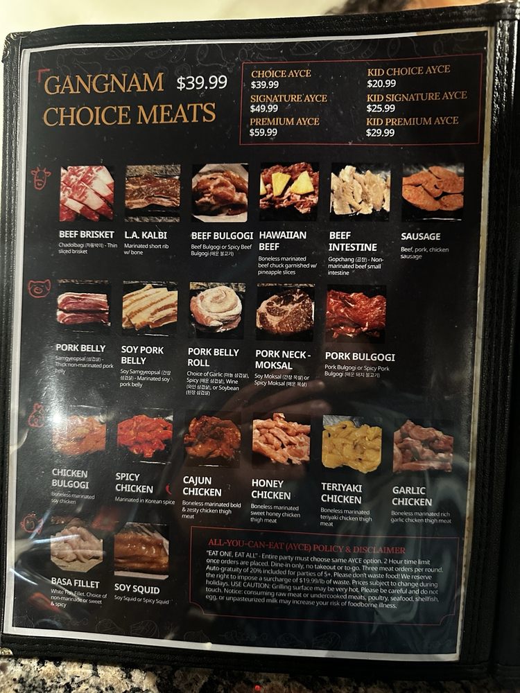 Gangnam Korean BBQ TX Menu